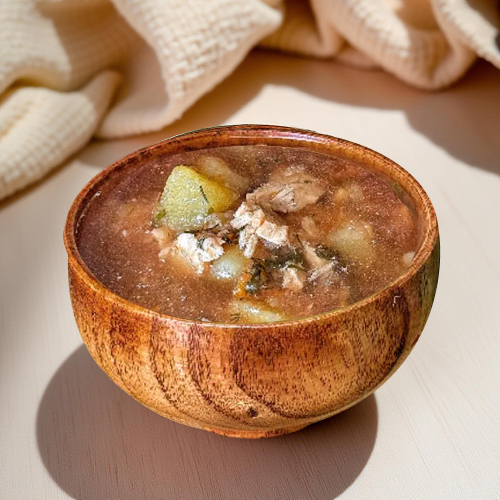 Суп с красной рыбой и сельдереем включает в себя филе кижуча и филе сёмги, которые прекрасно дополняются свежими овощами: морковью, картофелем и стеблем сельдерея. Каждый из этих ингредиентов был тщательно подобран для создания неповторимого вкусового сочетания. Добавление томатной пасты и помидоров черри придаёт супу легкую кислинку и яркий цвет, а чеснок, лавровый лист и зелень петрушки с укропом делают вкус восхитительным.