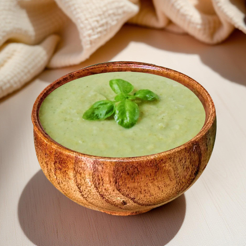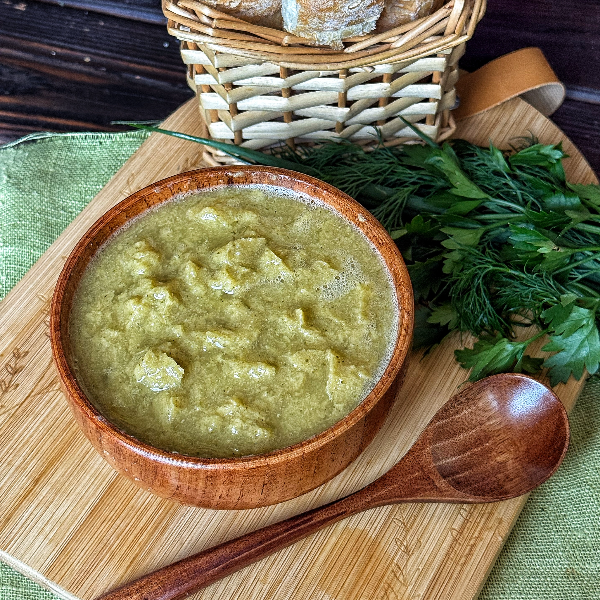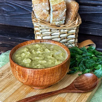 Состав: брокколи, картофель, лук репчатый, сливки, перец черный молотый, соль, растительное масло, мускатный орех, вода.