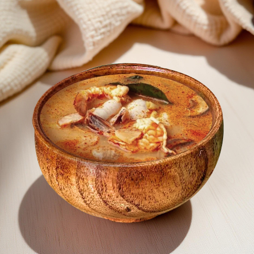 Входящие в состав кокосовое молоко и паста из тамаринда делают суп невероятно нежным и насыщенным. Кокосовое молоко не только придаёт блюду кремовую текстуру, но и обогащает его витаминами и минералами. Имбирь и галангал, которые также присутствуют в составе, известны своими противовоспалительными свойствами и улучшают пищеварение.