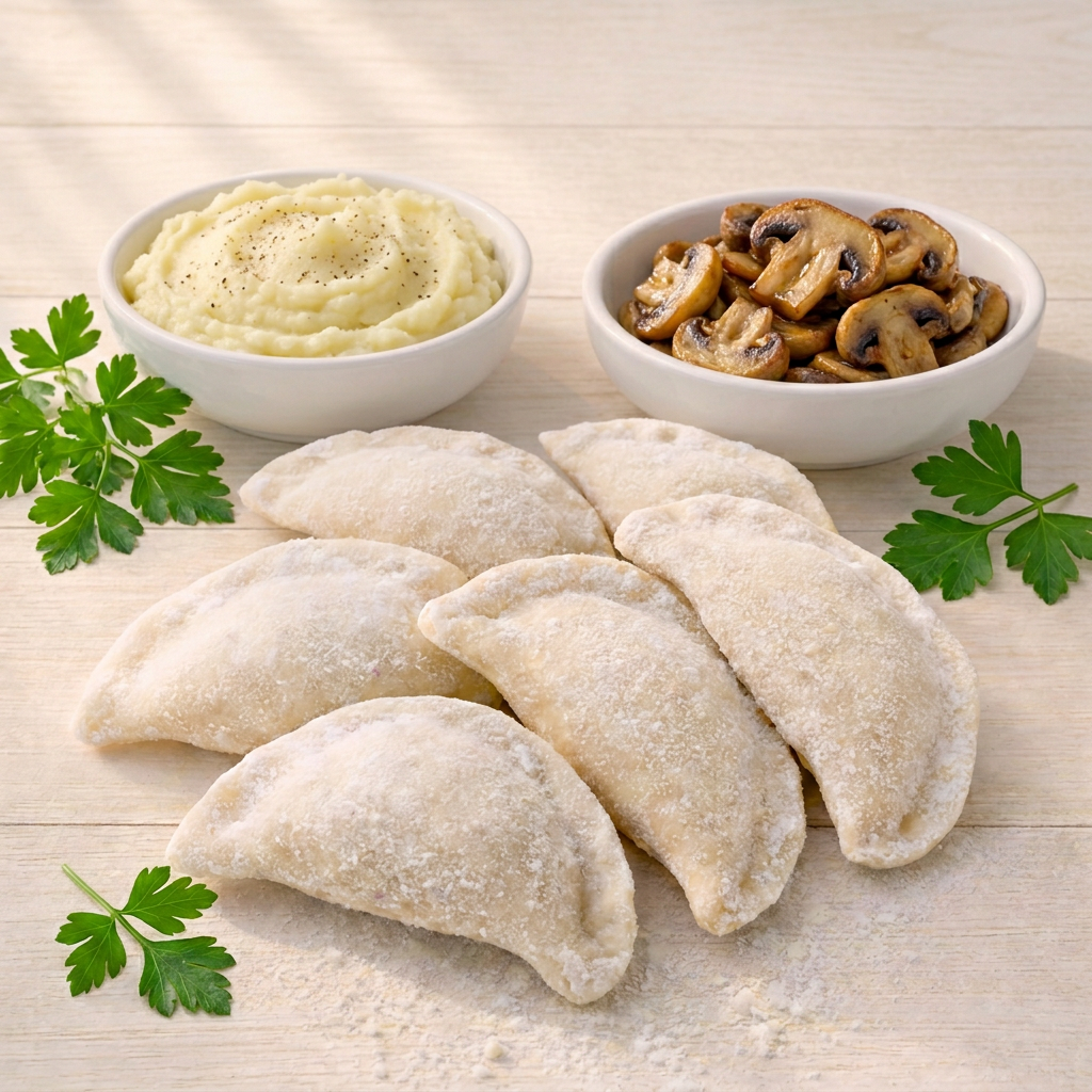 Из-за отсутствия химических стабилизаторов вареники требуют точного соблюдения времени варки. При переваривании они могут потерять форму. Натуральный состав обеспечивает мягкий, чистый вкус картофеля и грибов без интенсивных добавок — именно такой, как в домашней кухне.