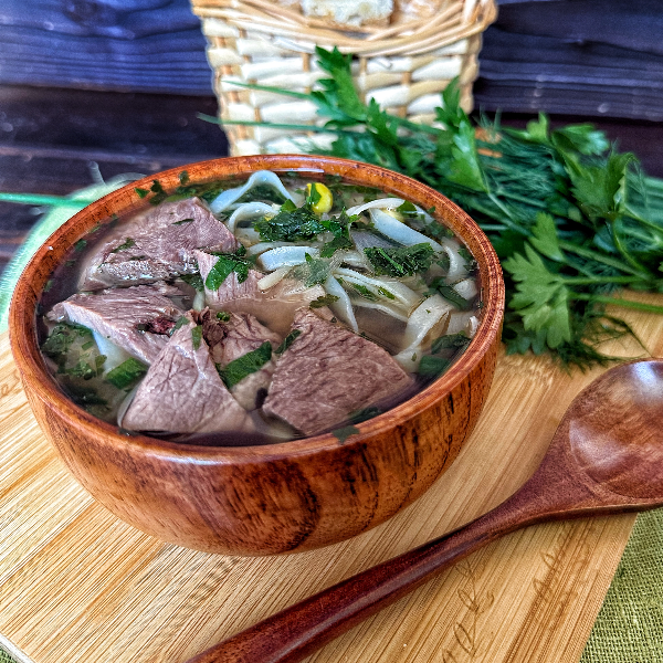 Традиционный вьетнамский суп Фо Бо с говядиной по рецепту шеф-повара. Суп заморожен достаточно только разогреть. В составе только натуральные ингредиенты без эмульсий, порошков имитирующих вкус, усилителей вкуса, красителей, консервантов, искусственных добавок, ГМО-продуктов и сои. Большая порция, такого объема хватит двоим деткам или одному взрослому мужчине.