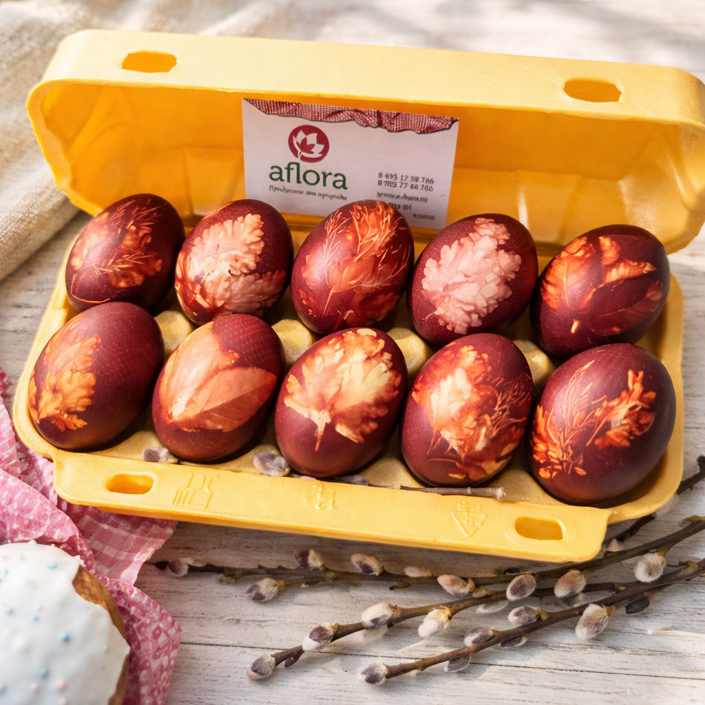Домашние фермерские яйца, покрашенные семьей "Афлора". Семейный способ, которым пользуемся уже более полувека. Мы взяли отборные большие домашние куриные яйца, и покрасили в луковой шелухе. Для декора использовали листики зелени. Красивые и необычные яйца для Пасхи - лучший вариант для занятых.