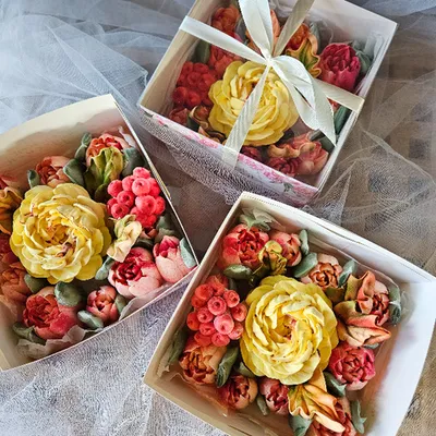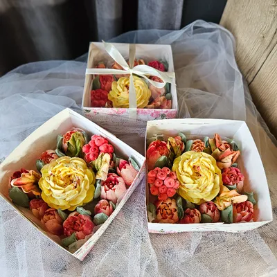 Зефир в коробке «Пион с тюльпанами»/16*16 см