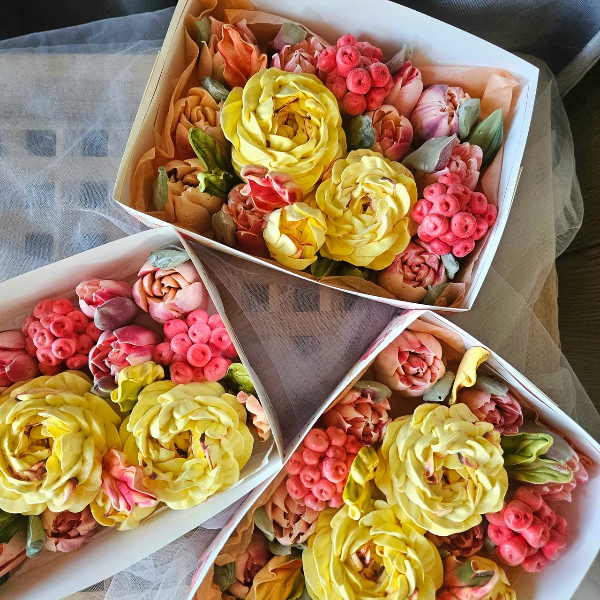 - Ручная работа: каждый элемент создан с дизайнерским подходом, что делает его не только десертом, но и настоящим подарком.