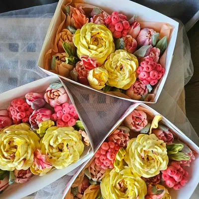 Зефир в коробке «Пион с тюльпанами»/23*16 см