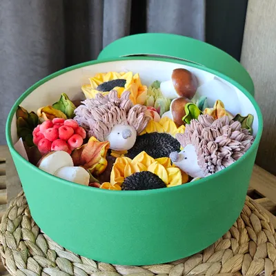 Зефир в шляпной коробке «Ежики с грибами»/ 25 см