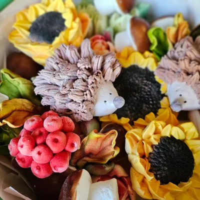 - сочетая натуральный состав и эксклюзивный дизайн зефир из реалистичных подсолнухов, ежиков и грибочков привлекает внимание