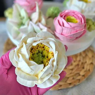 Зефир «Ранункулюсы» в шляпной коробке / 21 см