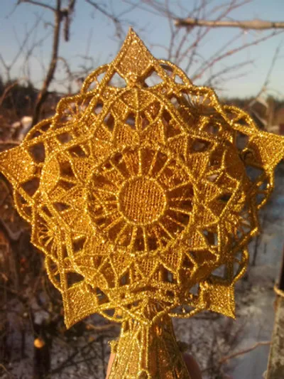 Широкий ассортимент изделий ручной работы и товаров для дома в магазине Афлора. Звезда на елку новогодняя блестящая, машинная вышивка